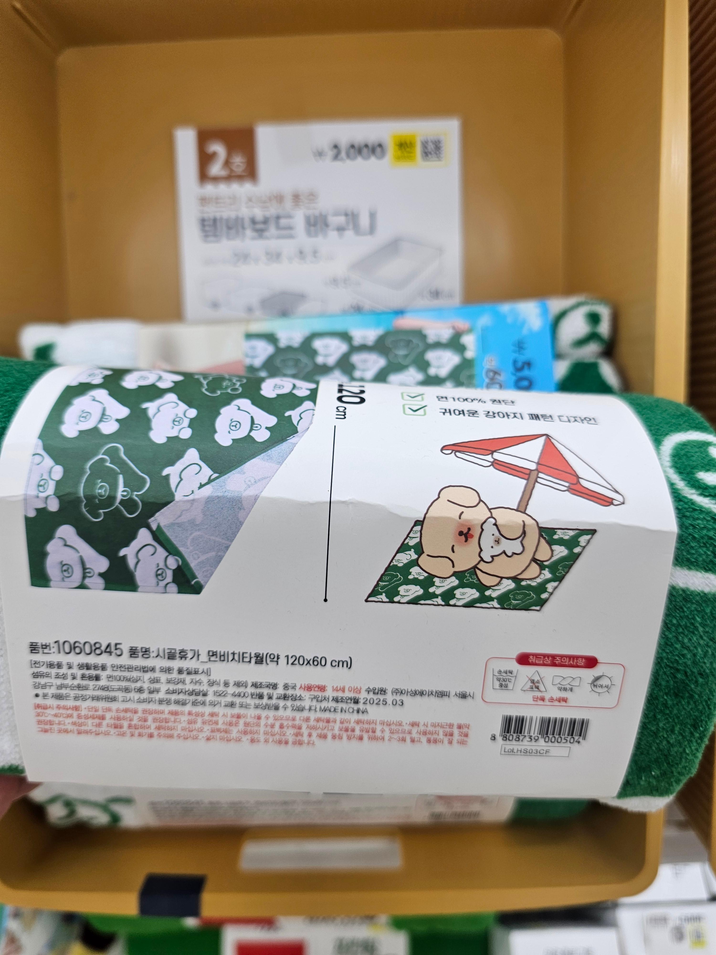 사이즈는 120cm x 60cm로 프린팅 타올보다는 작지만, 일반 목욕타올보다는 훨씬 큽니다.