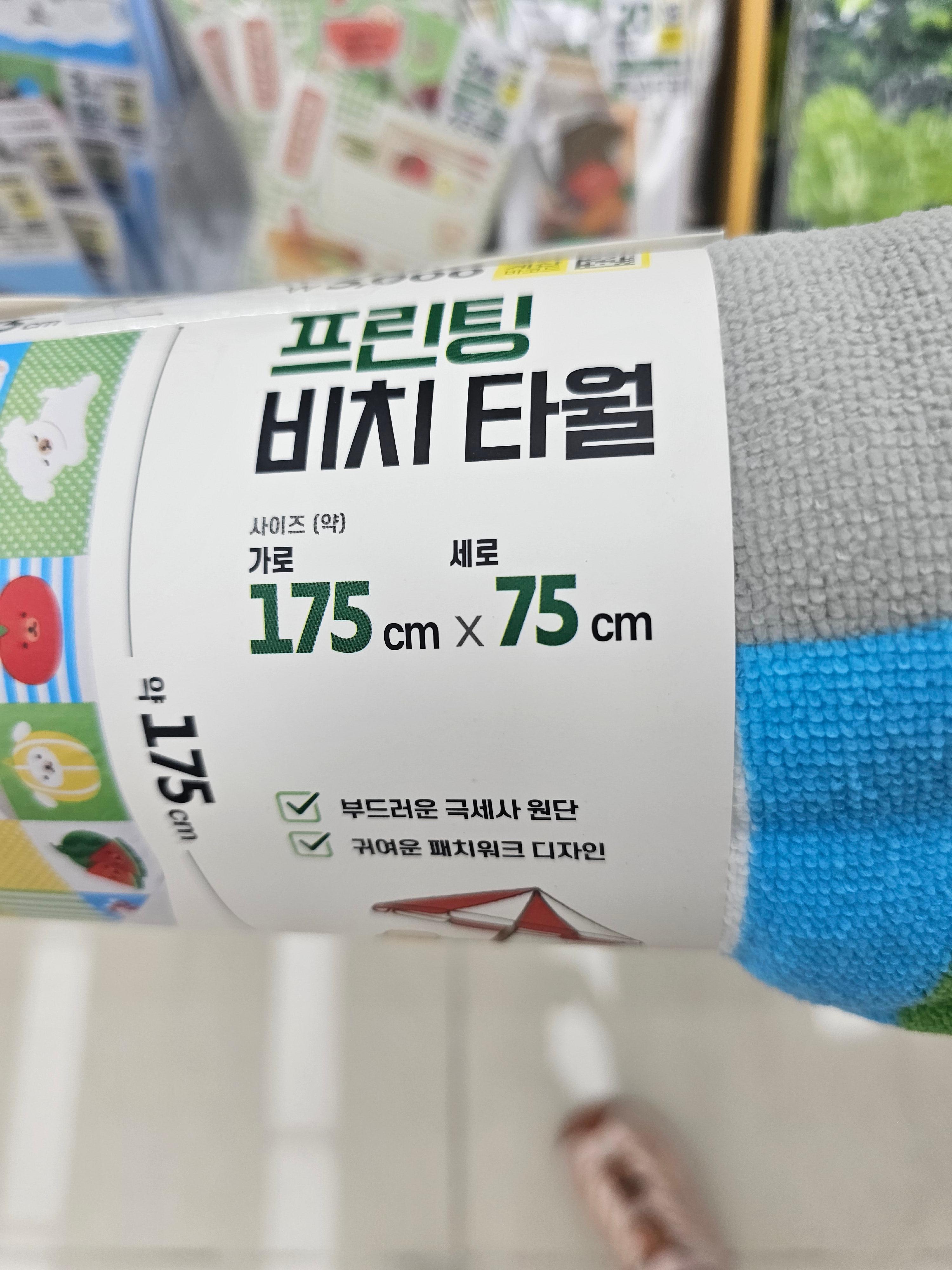 가로 175cm에 세로 75cm, 정말 ‘비치타올’이라는 이름에 어울리는 큼직한 사이즈예요.
