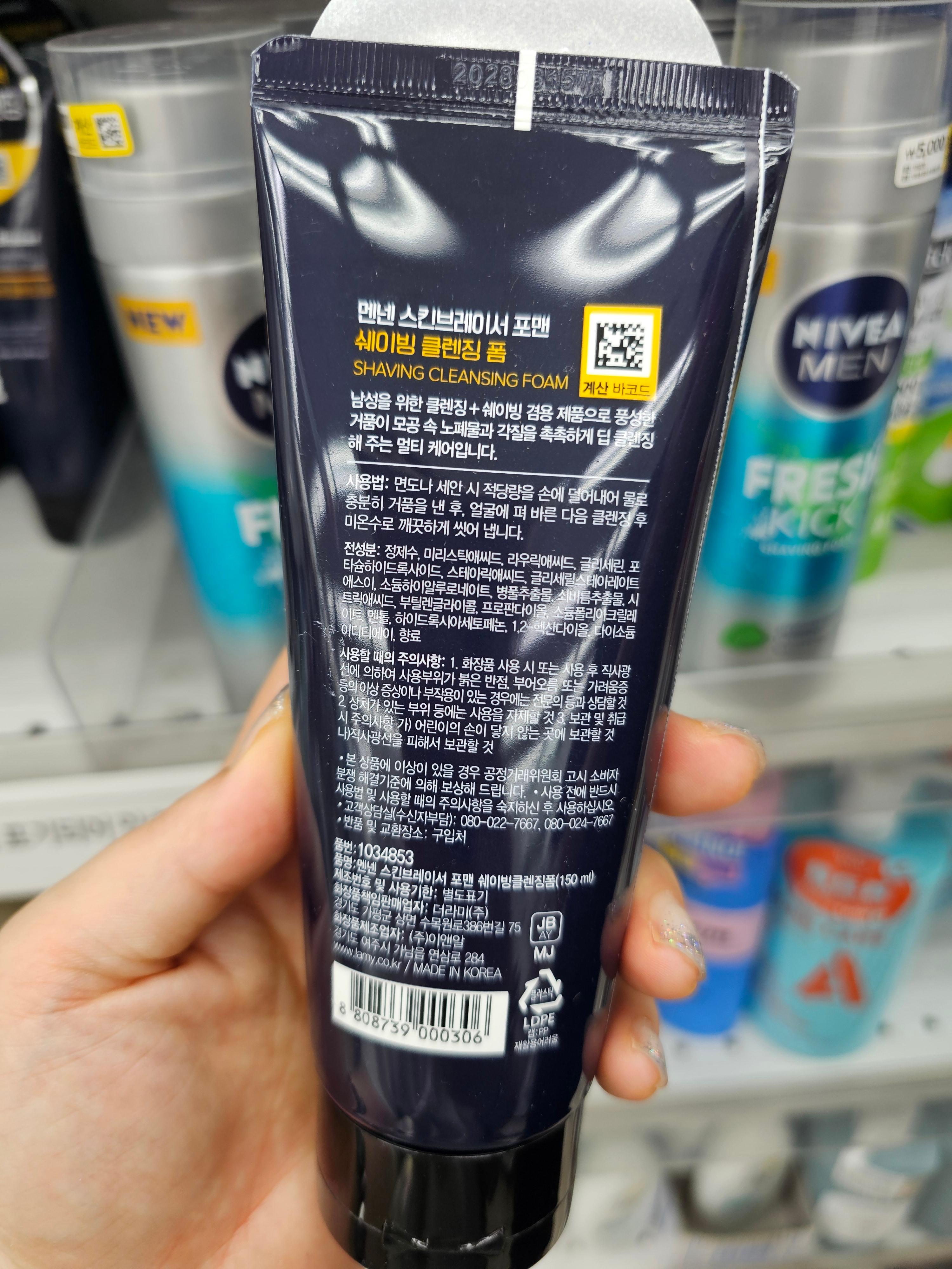 한 줄 코멘트: 3천 원으로 세안과 면도를 동시에 해결할 수 있는 가성비 갑 남자 클렌징폼!