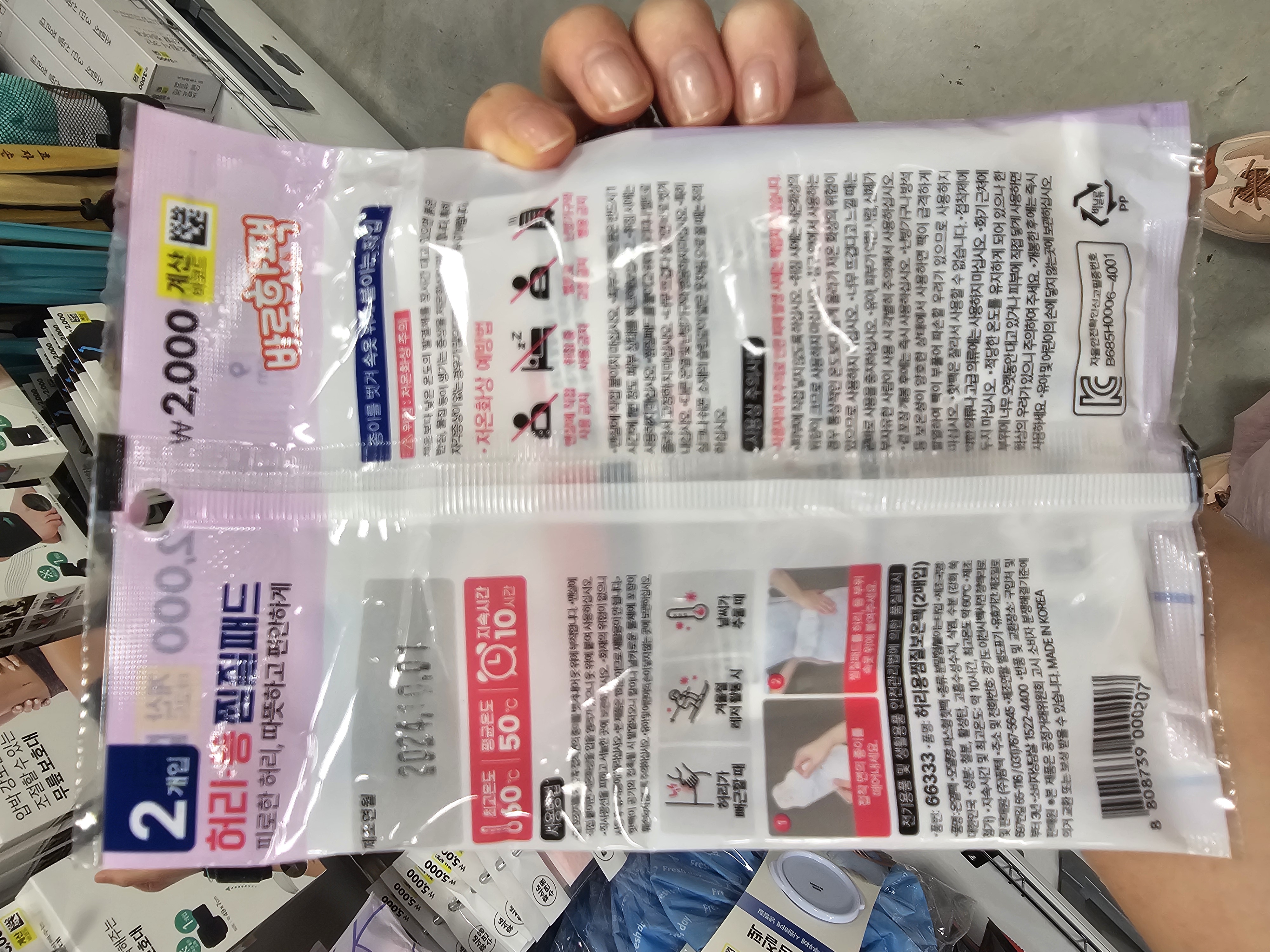 2. 다이소 허리·등 찜질패드 (₩2,000 / 2개입)