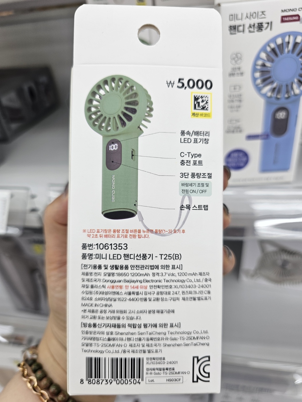 다이소에서 여름맞이 제품으로 미니 핸디 선풍기를 구입했어요. 가격은 단돈 5,000원! 저렴한 가격에 혹해서 구매했는데, 실제 사용해보니 꽤 괜찮은 퀄리티를 보여줘서 놀랐답니다. 제품명은 '미니 LED 핸디선풍기 - T25(B)', 모델번호는 1061353이에요.