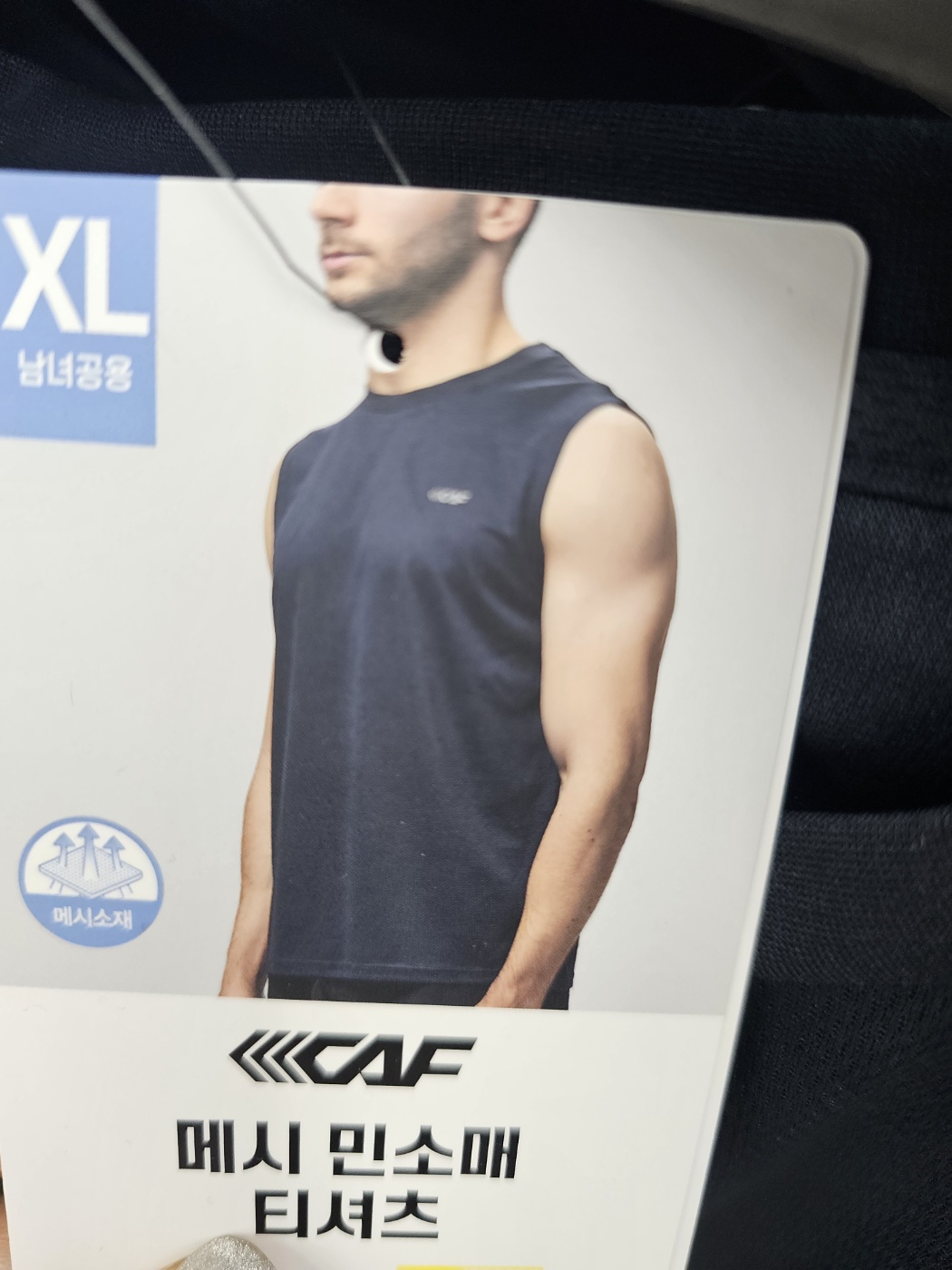 사진 속 모델처럼 몸에 너무 딱 달라붙지 않고, 적당히 여유 있는 핏이에요. XL 사이즈 기준, 남성 100~105 사이즈 입는 분들까지는 넉넉하게 맞을 듯해요. 여성분들도 박시한 느낌으로 입을 수 있고, 팔을 완전히 드러내는 민소매라 활동할 때 정말 편해요.