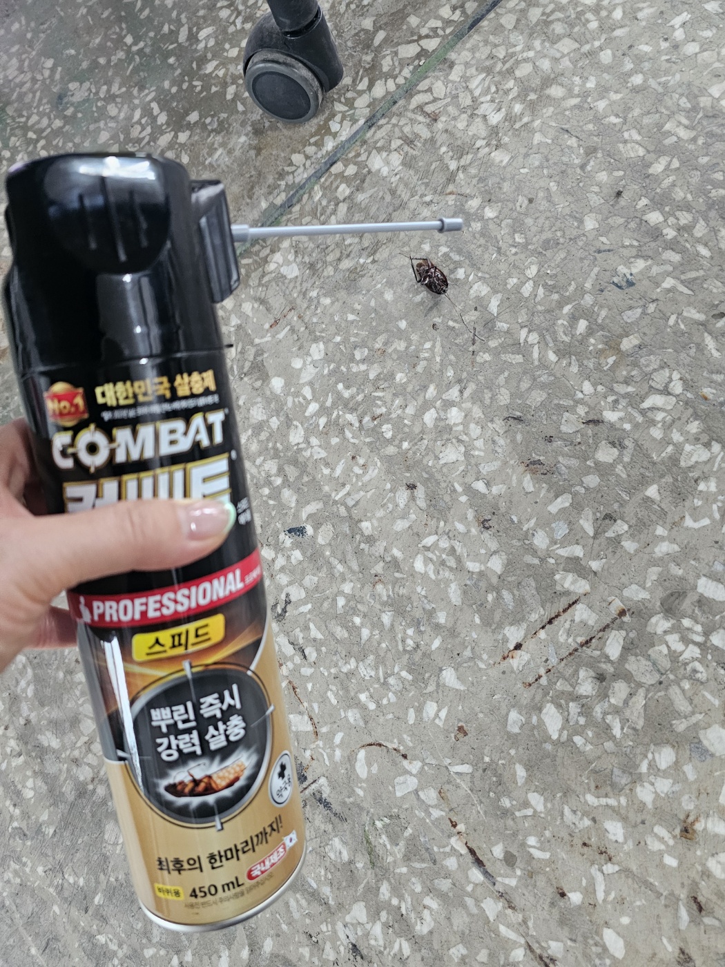 이번에는 퇴근 전에 사무실 내 싱크대 아래, 프린터 뒤, 책상 아래 등에 스프레이를 뿌리고, 일부는 겔을 짜서 놔뒀는데 다음날 아침 정말로 바닥 한구석에서 뒤집힌 바퀴벌레가 발견되어 너무 놀랐어요. 그동안은 “이게 효과가 있을까?” 했는데 눈으로 확인하고 나니, 앞으로 꾸준히 사용해야겠다는 확신이 들었습니다.