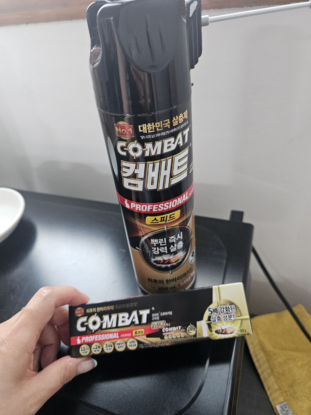 이번에는 컴배트 스프레이(속칭 살충제)와 컴배트 맥스 겔(속칭 유인형 독먹이) 두 가지를 함께 사용해봤습니다. 그리고 놀랍게도, 퇴근 전에 스프레이 뿌려놓고 다음날 출근했더니 진짜로 바퀴벌레가 죽어 있는 걸 발견해서 후다닥 리뷰를 쓰게 되었어요!
