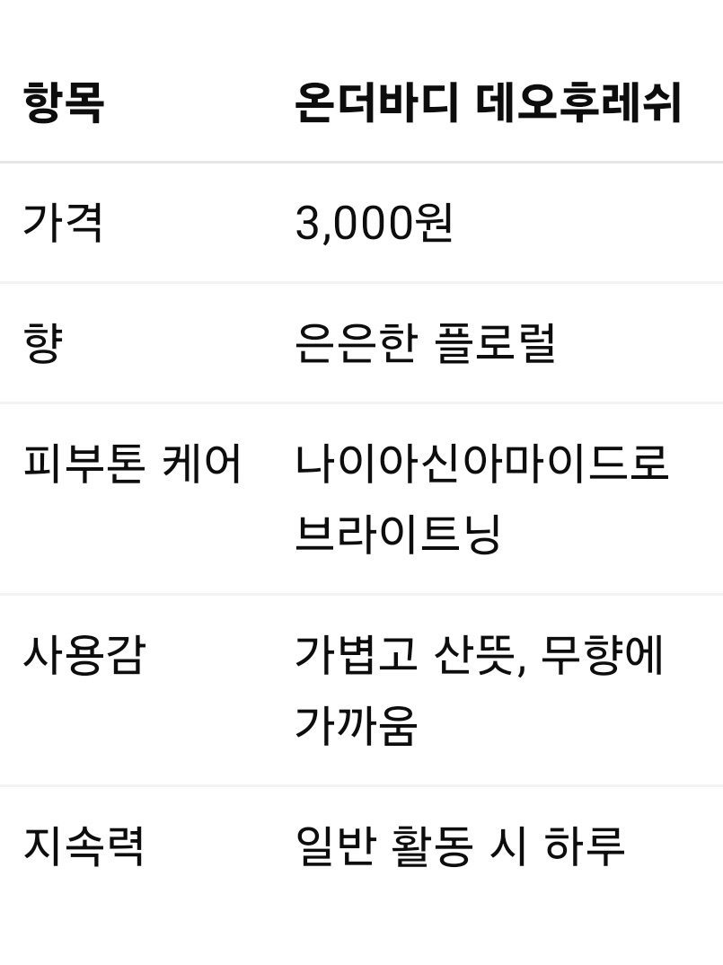 ✔ 온더바디는 부담 없는 가격에 데일리용으로 추천!